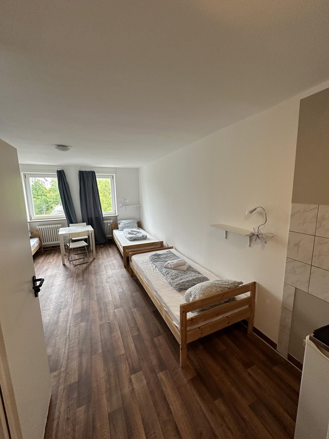 Apartment, 03-Eversbusch Straße 168Wir haben den Preis, den Sie für Arbeiter, Studenten oder Unternehmen benötigen. Die Aufteilung und die Farbe der Möbel oder die Größe des Zimmers können von den Fotos abweichen. Die Zimmer für 1 bis 4 Personen sind zwischen 10 und 25 Quadratmetern groß. Unsere Einheiten sind grundsätzlich mit einer einfachen Hostelausstattung möbliert.